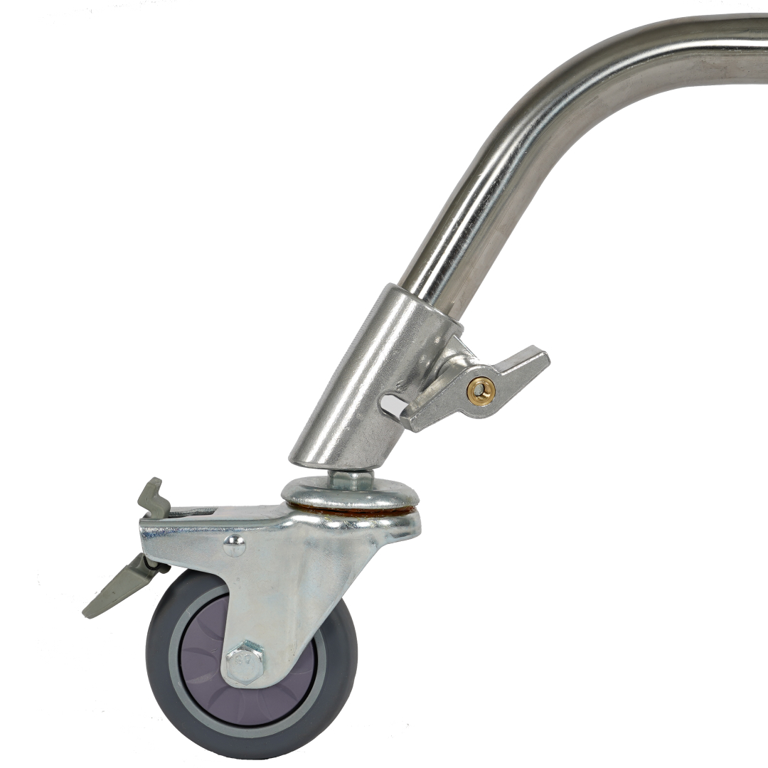 Với khoá có sẵn trong mỗi bánh xe, người sử dụng có thể dễ dàng khoá các bánh xe để có thể cố định vị trí của đèn để tránh trường hợp bị tác động trong lúc sử dụng.