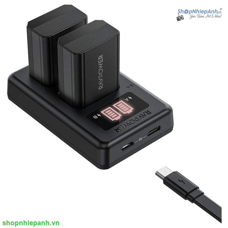 Bộ 2 pin và sạc LCD RAVpower for Sony FZ100 A9 A9ii A7iii A7Riii A7Siii A7IV A7V a6600