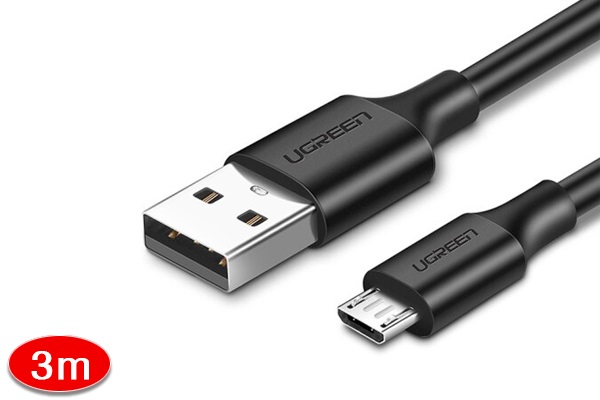 Cáp Micro USB 3m Ugreen 60827, sử dụng kết nối máy ảnh, điện thoại, máy tính bảng, máy quay... kết nối với máy tính