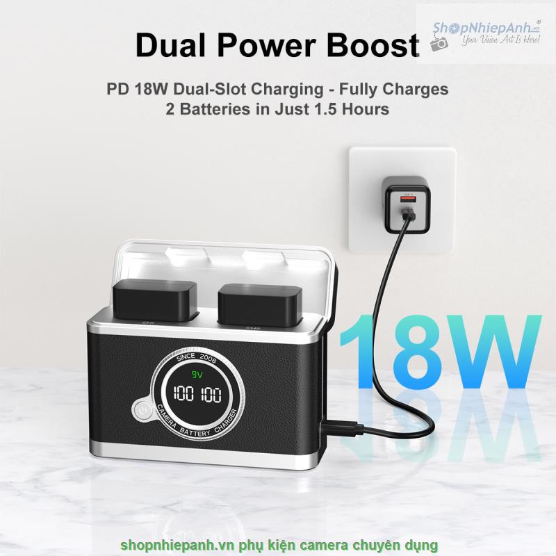 Input Fast charge  PD 9V 2A, sạc nhanh 2 pin tốc độ cao đầy trong khoảng 1,5h