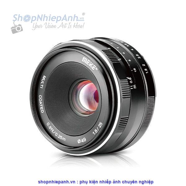 -Lens Meike 25f1.8 có vòng khẩu tròn với hệ thống 9 lá khẩu siêu nhỏ, khẩu độ mở rộng tối đa F1.8, giúp sáng tạo các hiệu ứng đẹp lung linh trong các bức ảnh.