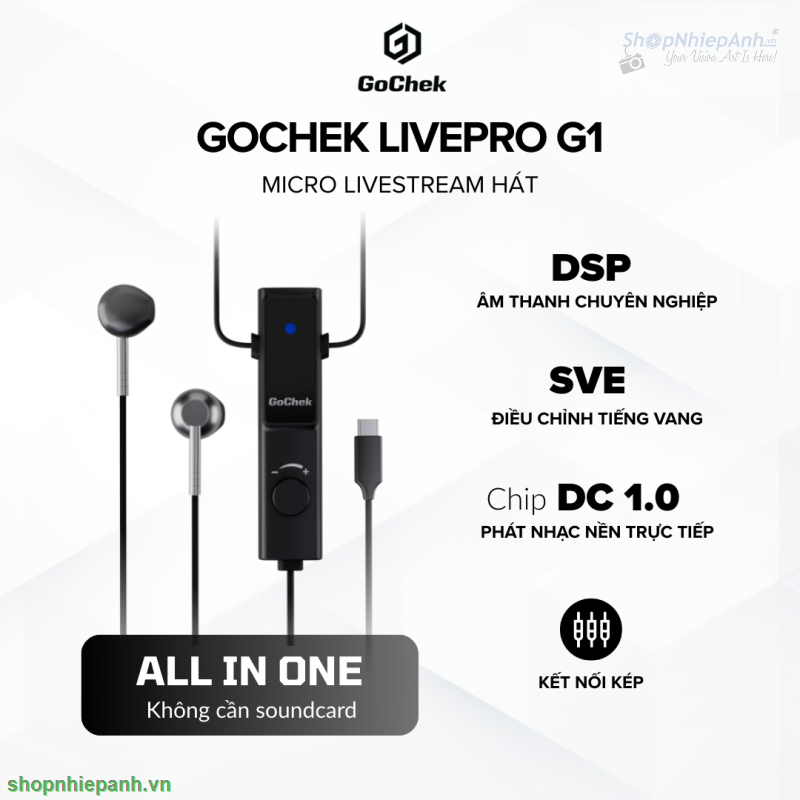 - DỄ SỬ DỤNG: Với thiết kế nhỏ gọn chỉ khoảng 30g, GoChek LivePro G1 tích hợp duy nhất một nút bấm để điều chỉnh toàn bộ chế độ. Người dùng chỉ cần cắm trực tiếp mic vào thiết bị là có thể bắt đầu ngay lập tức, không cần qua bất kỳ bước cài đặt phức tạp nào.