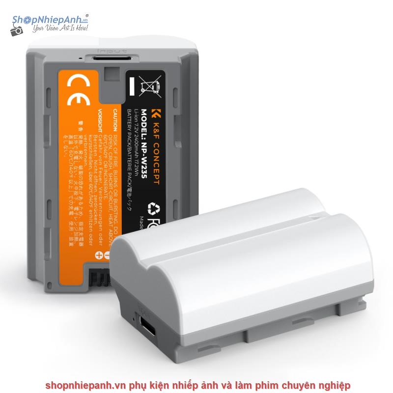 Pin K&F concept NP-W235 2400mah sạc trực tiếp type C fast charging Fujifilm X-T5, X-S20, X-H2, X-H2S, GFX 100S, GFX 50S II, X-T4